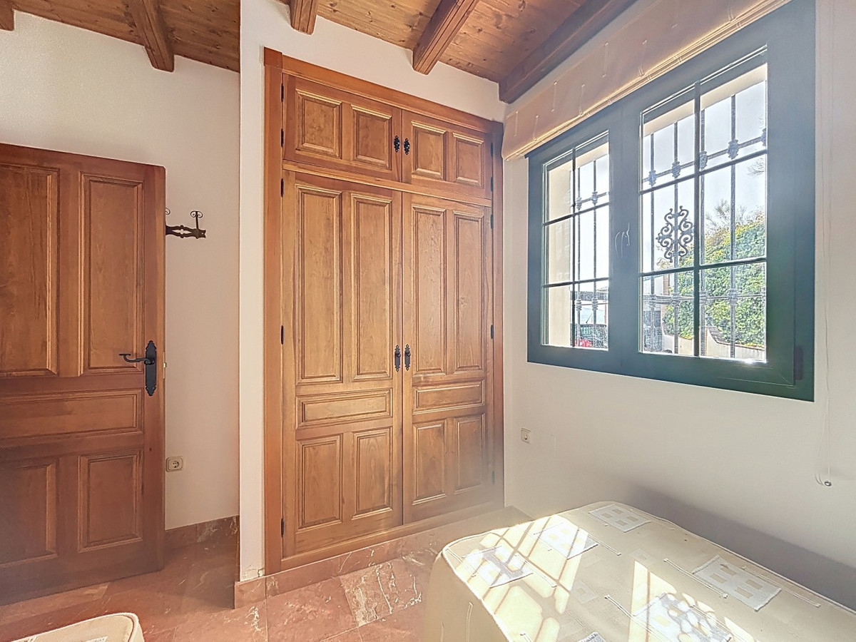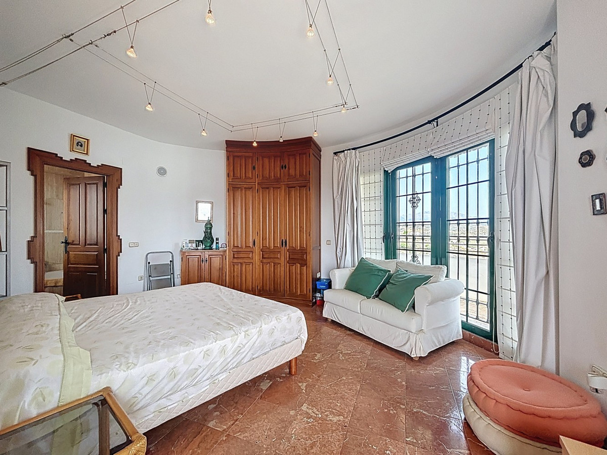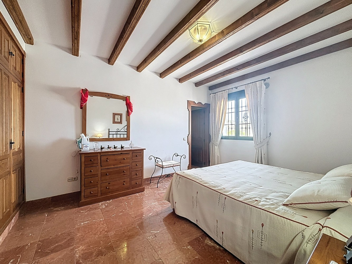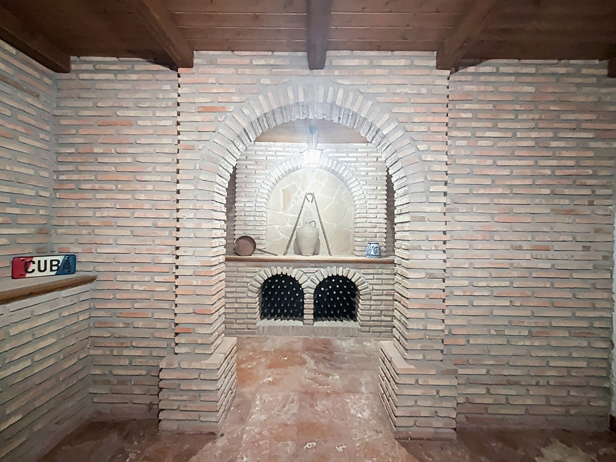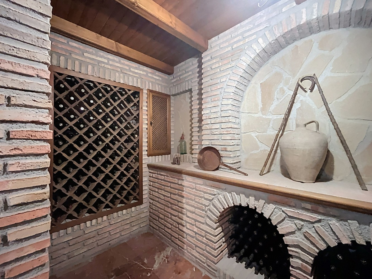 This charming villa in Los Romanes, Málaga, perfectly combines traditional Spanish architecture with modern comfort. The main house features 4 bedrooms, including a spacious master suite, 3 full bathrooms, a guest toilet, a laundry room, and a wine cellar in the basementideal for wine lovers. The living areas are characterized by wooden beam ceilings that add warmth and character. The main living room stands out with its striking sun-patterned wooden ceiling and a large wrought-iron chandelier. A fireplace and comfortable furnishings create a cozy atmosphere. Large windows and French doors flood the space with natural light and offer beautiful views of Lake Viñuela and the surrounding nature. The property also includes a separate guest apartment with 2 bedrooms, a bathroom, and a cozy open-plan living-dining area with a kitchenideal for visitors or additional accommodation. Outside, the villa boasts a large plot with a private pool, an outdoor kitchen with barbecue, a covered terrace, a pavilion, two garages, and two storage rooms with the potential to be converted into another apartment. Additionally, the property has its own well and a water cistern in one of the garages, ensuring a reliable water supply year-round. We are pleased to be able to present this dream property to you soon, either personally or via virtual viewing. Because this world is unique - just like our Axarquía. In Andalusia. On the Costa del Sol. Here, on the sunny side of life...