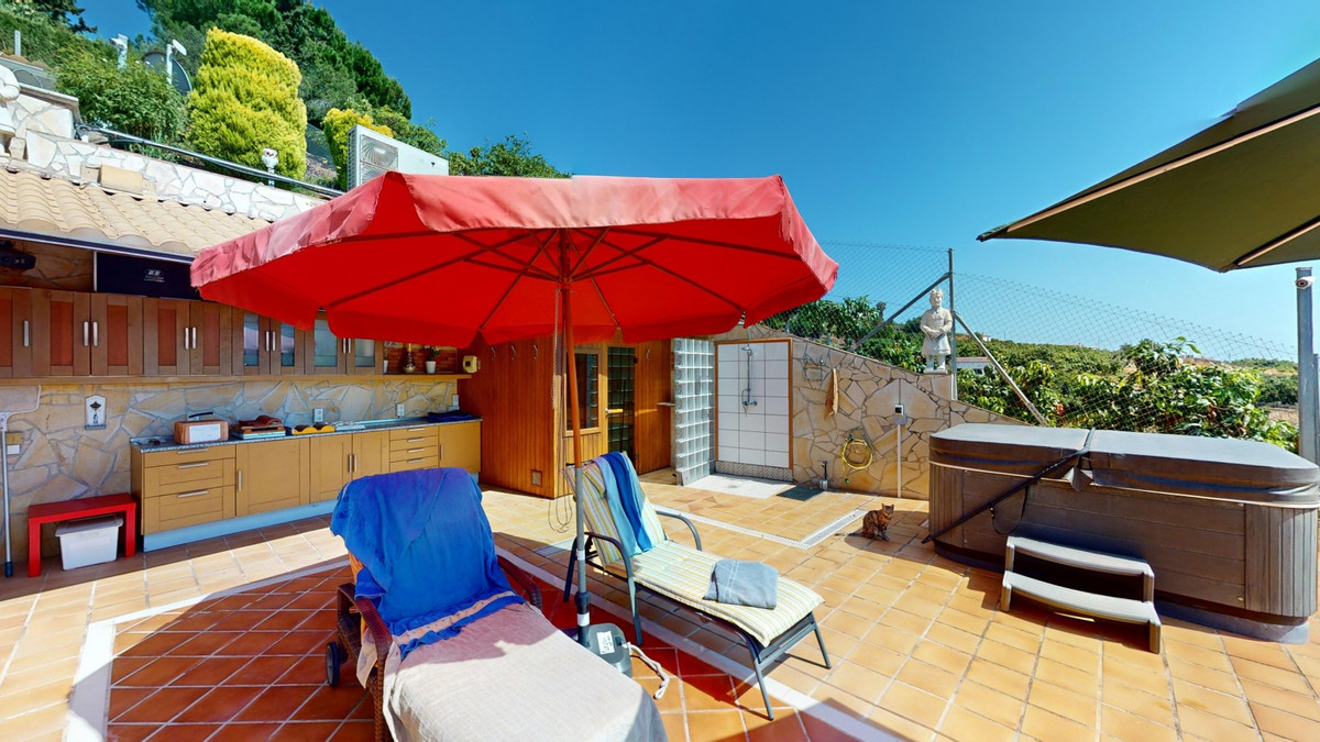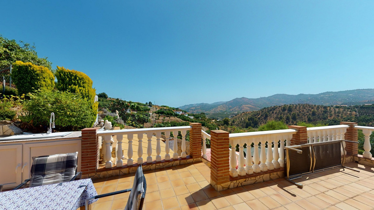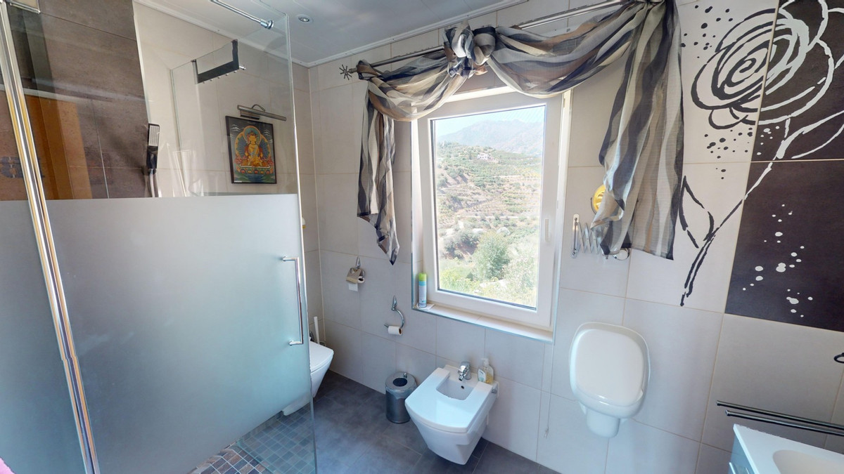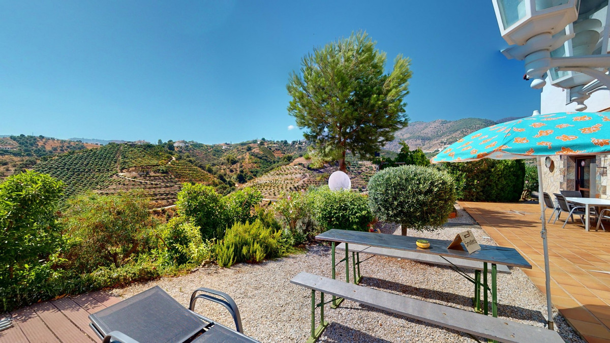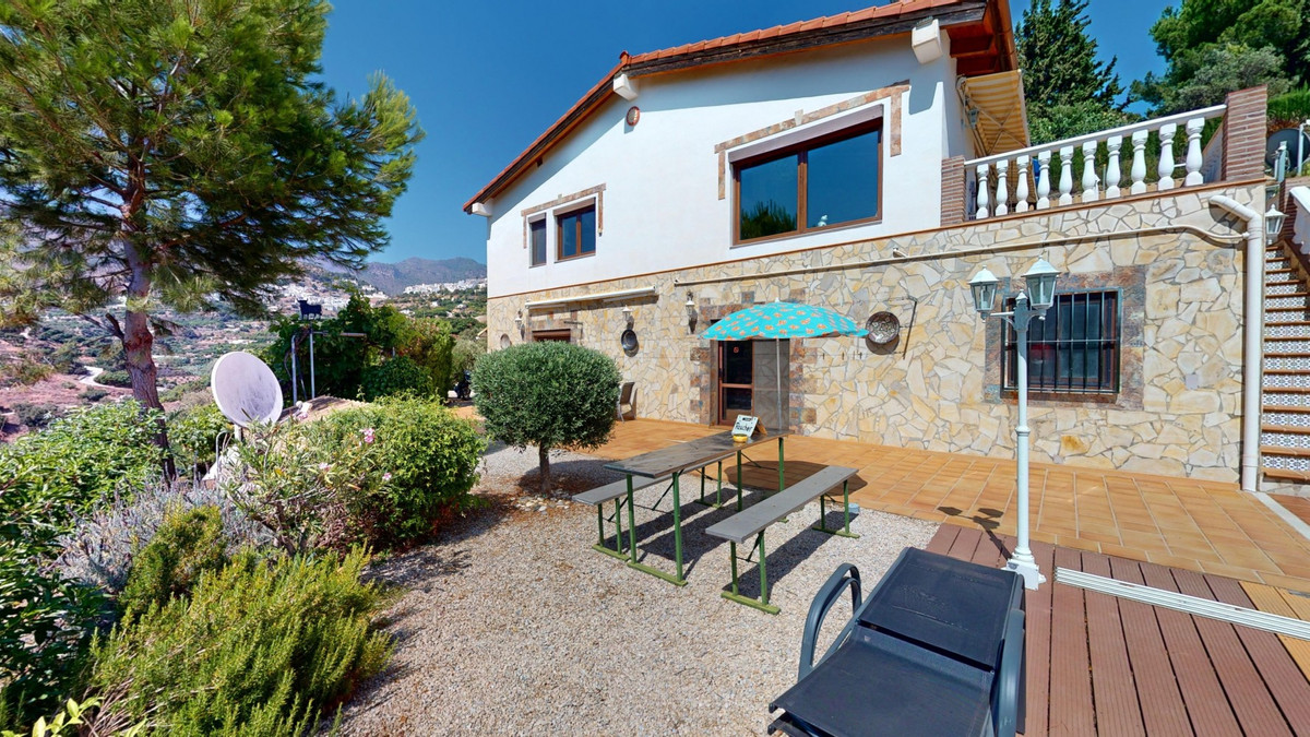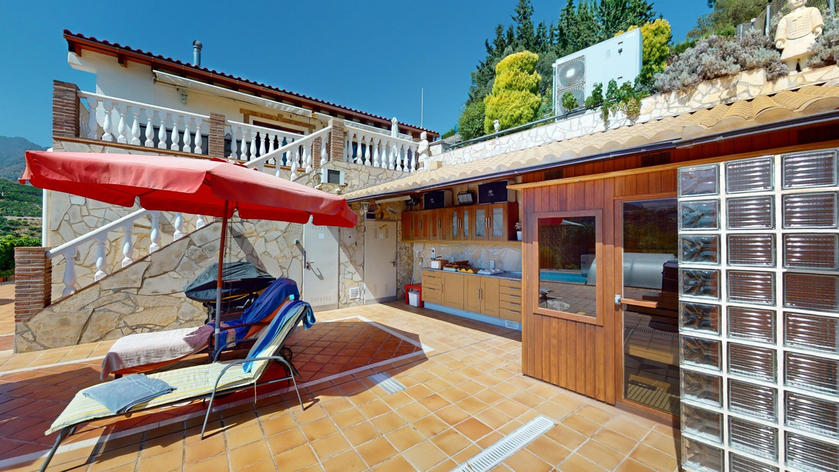 Stunning Villa Below Frigiliana for Sale. This impressive villa, nestled below Frigiliana, offers two separate living units across two floors, each with its own driveway and privacy. The upper unit spans 150 m2 and features a spacious open-plan living and dining area with an adjoining kitchen and convenient storage space. From the terrace, enjoy breathtaking views of the surrounding mountains. A standout feature of this apartment is the rotating fireplace in the living room, adding warmth and ambiance. Additionally, the terrace accommodates a fitness room. Another highlight is the luxurious bathtub in the living room, perfect for relaxing moments. The unit comprises three spacious bedrooms, two bathrooms (one en-suite in the master bedroom), and a guest toilet. The lower unit includes a cozy living and dining area with a kitchen, one bedroom, and a bathroom, totaling 80 m2 of living space. The entire house is equipped with underfloor heating, air conditioning, and a central vacuum system, built to the highest German standards with excellent insulation and quality materials. A solar panel system on the roof provides heating and hot water. The outdoor area of this exceptional villa leaves nothing to be desired. There is a heated saltwater pool with an easy-to-operate cover, a relaxing jacuzzi, and a fully equipped outdoor kitchen with a sauna. Additionally, there is a workshop, a caravan, and another small building at the foot of the property. The 6000 m2 plot is adorned with numerous fruit trees, inviting nature lovers to linger. The villa boasts good connectivity and is perfect for those who appreciate a tranquil lifestyle amidst nature. Experience luxurious living in a breathtaking location your new home below Frigiliana awaits! We are pleased to be able to present this dream property to you soon, either personally or via virtual viewing. Because this world is unique - just like our Axarquía. In Andalusia. On the Costa del Sol. Here, on the sunny side of life...