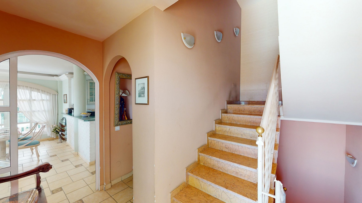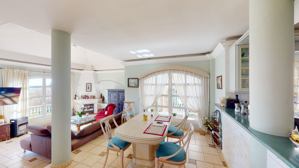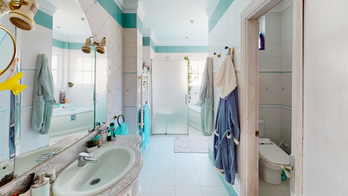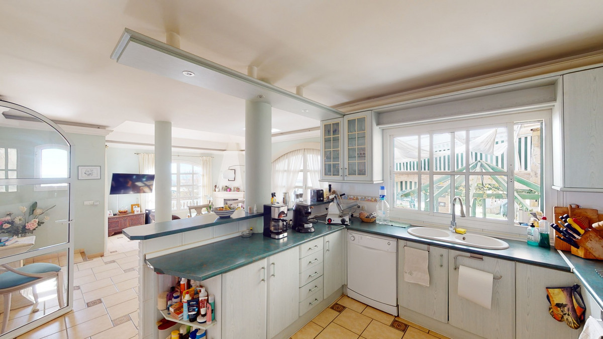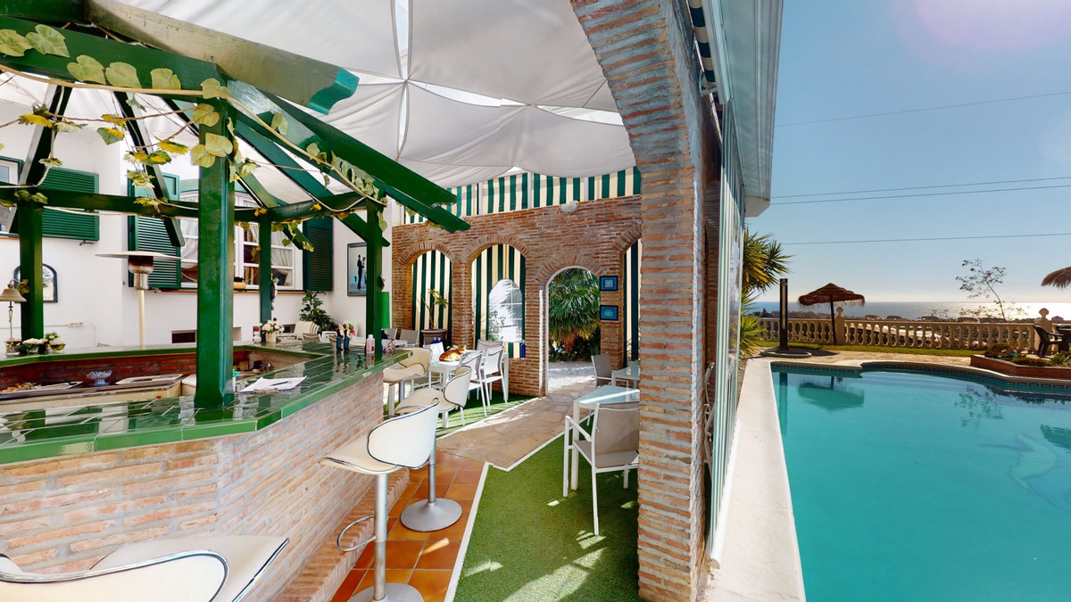 Have you always dreamed of a large, stately home with space for the whole family? Then we have the perfect property for you. This villa of about 500m2 is divided into two semi-detached houses. Two residential units with their own entrances and five levels each. In addition, both halves of the house have a guest annex. Perfect for a large family, as a business model with renting, or as a tennis club. The possibilities are numerous. A shared, spacious basement with a laundry room, storage rooms and an exit to the outside, connects the halves. Separate staircases lead to the ground floor of the villa. Mirrored on both sides, there is the main entrance, a guest toilet, and a large living-dining room with an open kitchen and fantastic views of the coast. The first floor offers one room each that can be used as an office and the master bedroom with private bathroom, a walk-in closet and a small terrace. On the second floor, the duplexes open up and offer a shared kitchen with an exit to the upper level of the property. A shared wide staircase leads to the top floor of the property, where there are two bedrooms with their own bathrooms. The two separate guest annexes on the basement level have an open plan living-bedroom area with a small kitchen, as well as a bathroom. Now we come to the highlight of the property, the outdoor area. Right next to the villa is a covered bar area with seating, perfect for parties in summer and winter. If you need to cool off, on those hot summer days you can jump right into the inviting pool. Or relax on a lounger overlooking the sea. Behind an ivy-covered fence, there is a sand court for the tennis lovers among you. Above the court there is a building with a sauna, showers and toilets. The property has two, large parking spaces. One on the upper level, where there is the entrance to the communal kitchen and the building with the sauna. And one, with a carport, on the lower level, where the main entrances to the semi-detached houses, as well as the pool and tennis court are located. The property is self-sufficient due to its own water supply and sewage system. There is a 15,000 liter well that supplies the complex and the tennis court. We are pleased to be able to present this dream property to you soon, either personally or via virtual viewing. Because this world, it is unique - just like our Axarquía. In Andalusia. On the Costa del Sol. Here, on the sunny side of life...