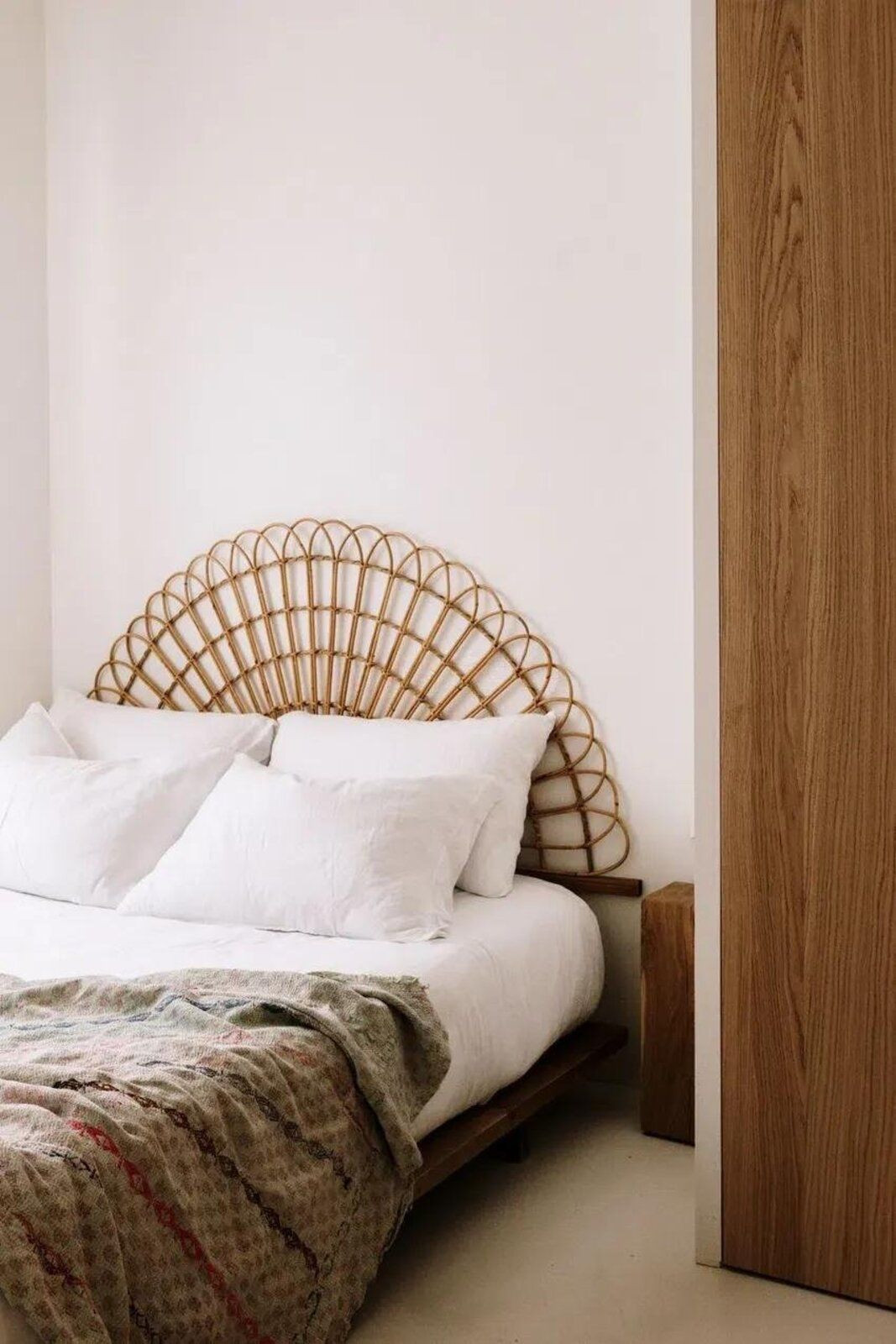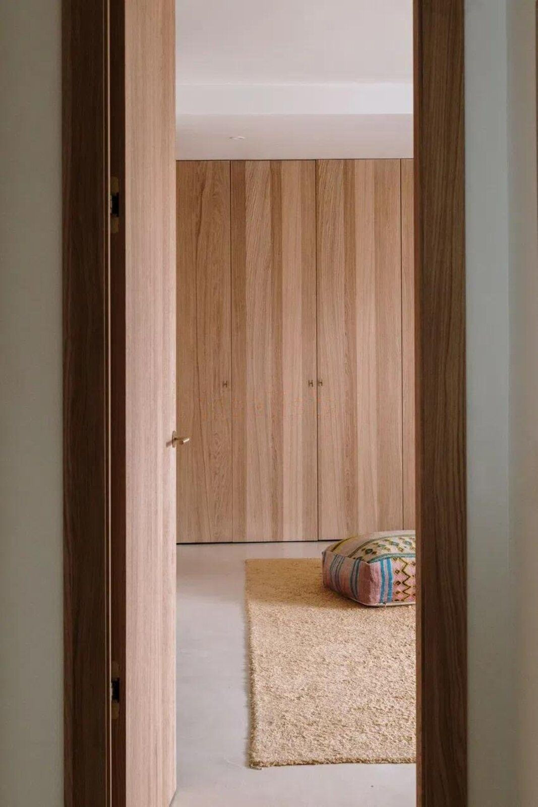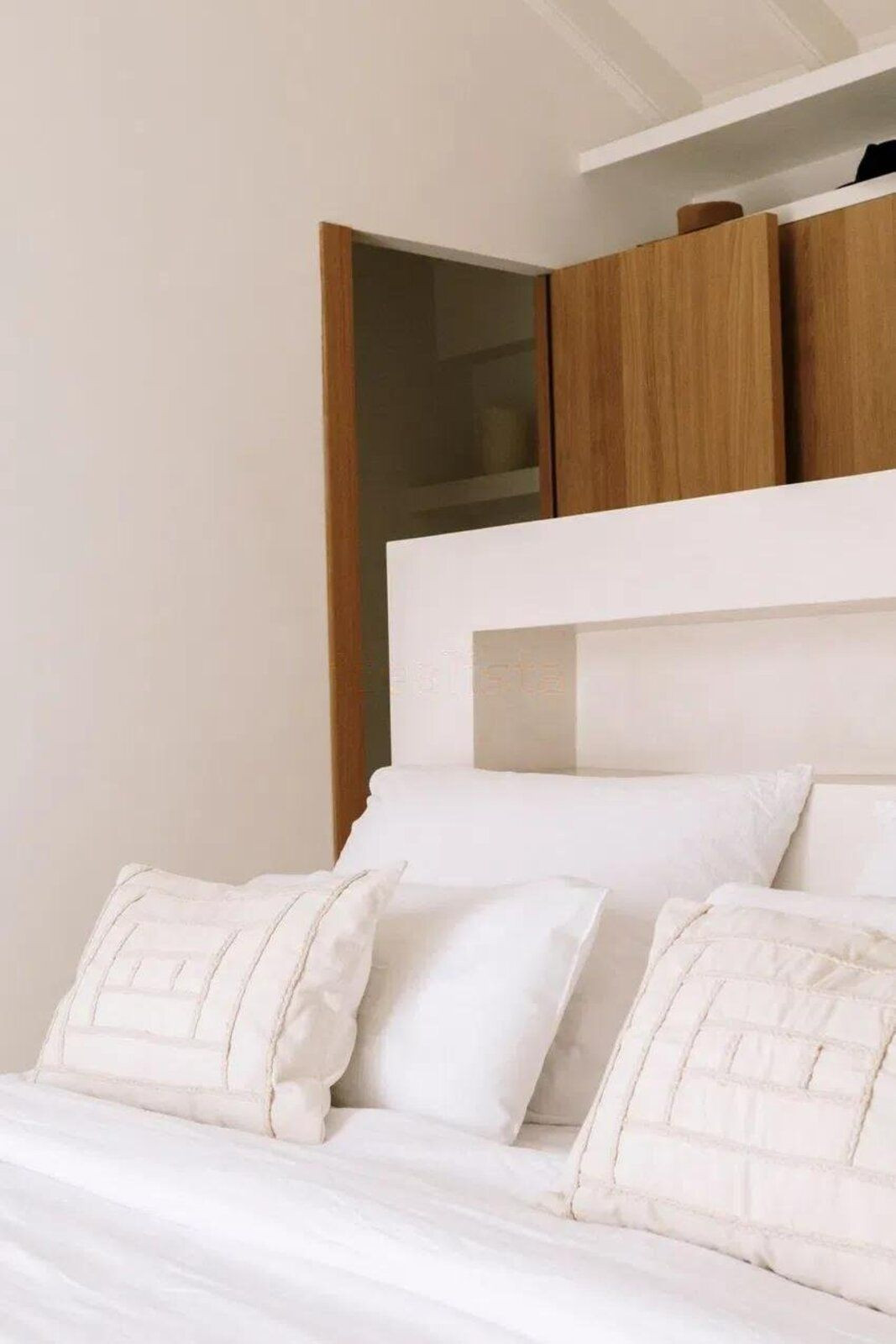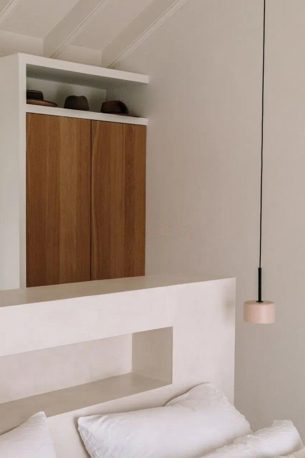 Master bedroom with open views of La Concha. Microcement bed base and 200x200 cm double bed with integrated electrical outlets. Electric blinds and double-glazed windows. Built-in oak wardrobes.