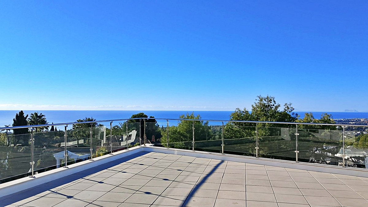 The attic level reveals a spectacular terrace offering panoramic views of La Concha Mountain, the Mediterranean Sea, and the surrounding countryside—perfect for relaxation or entertaining.