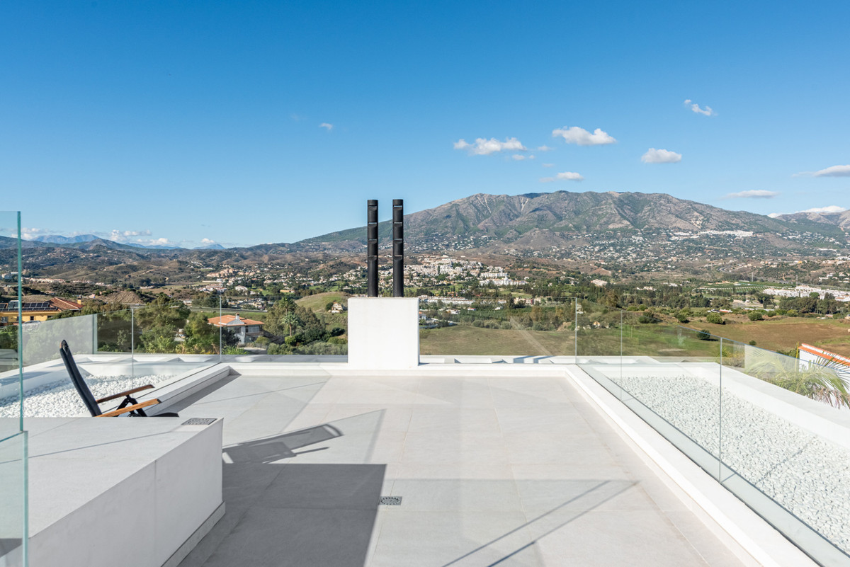The spacious rooftop solarium boasts uninterrupted 360-degree views of the valley, mountains, and the sea. It is an ideal space for installing a jacuzzi, creating a chill-out lounge, or simply enjoying peaceful sunsets in total privacy.
