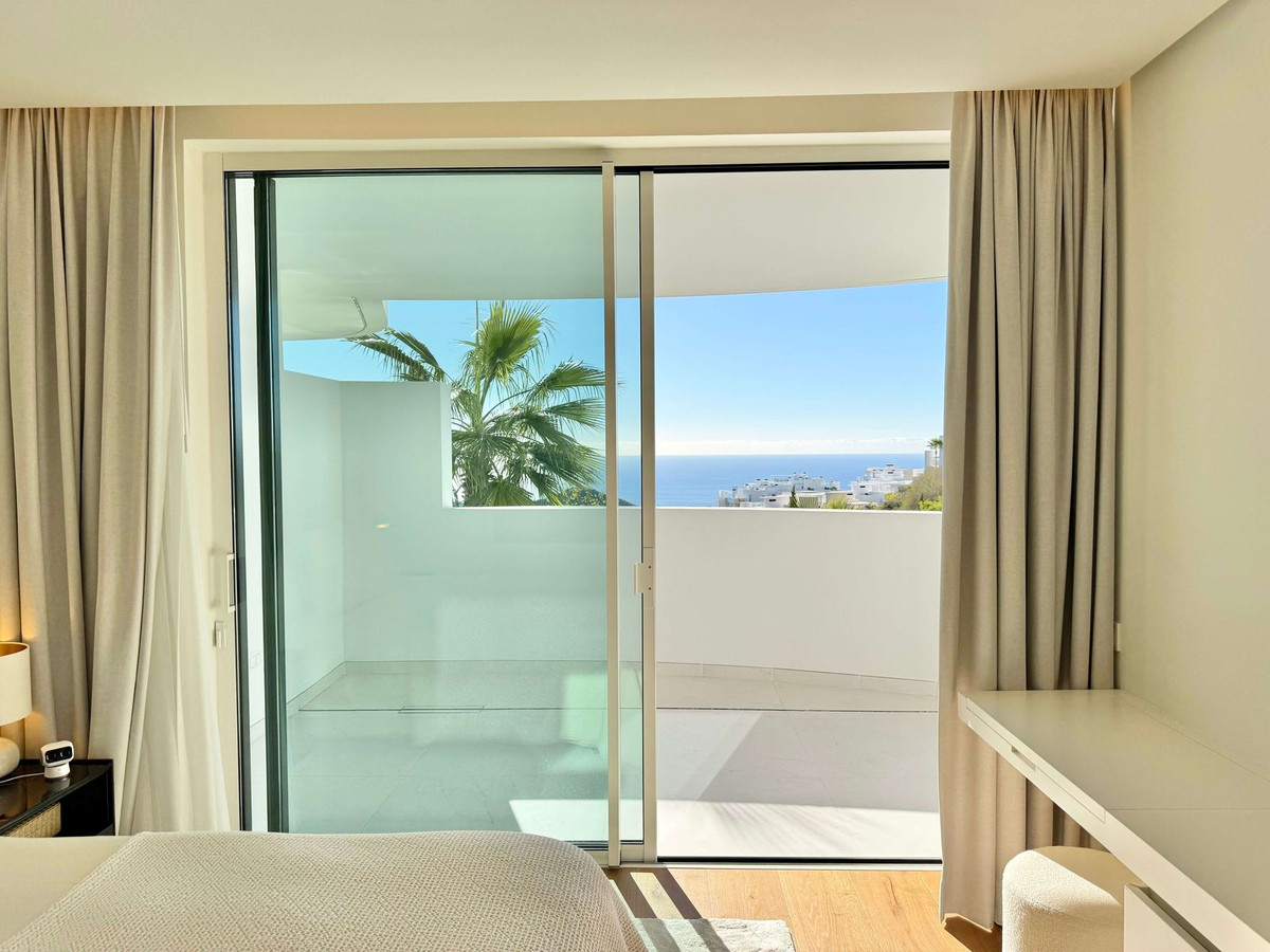 This spacious apartment with three bedrooms and two bathrooms has large windows that let natural light flow through the living areas and create a seamless connection with the large terrace offering sea views.