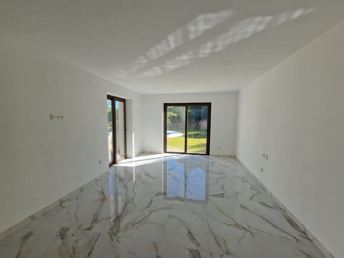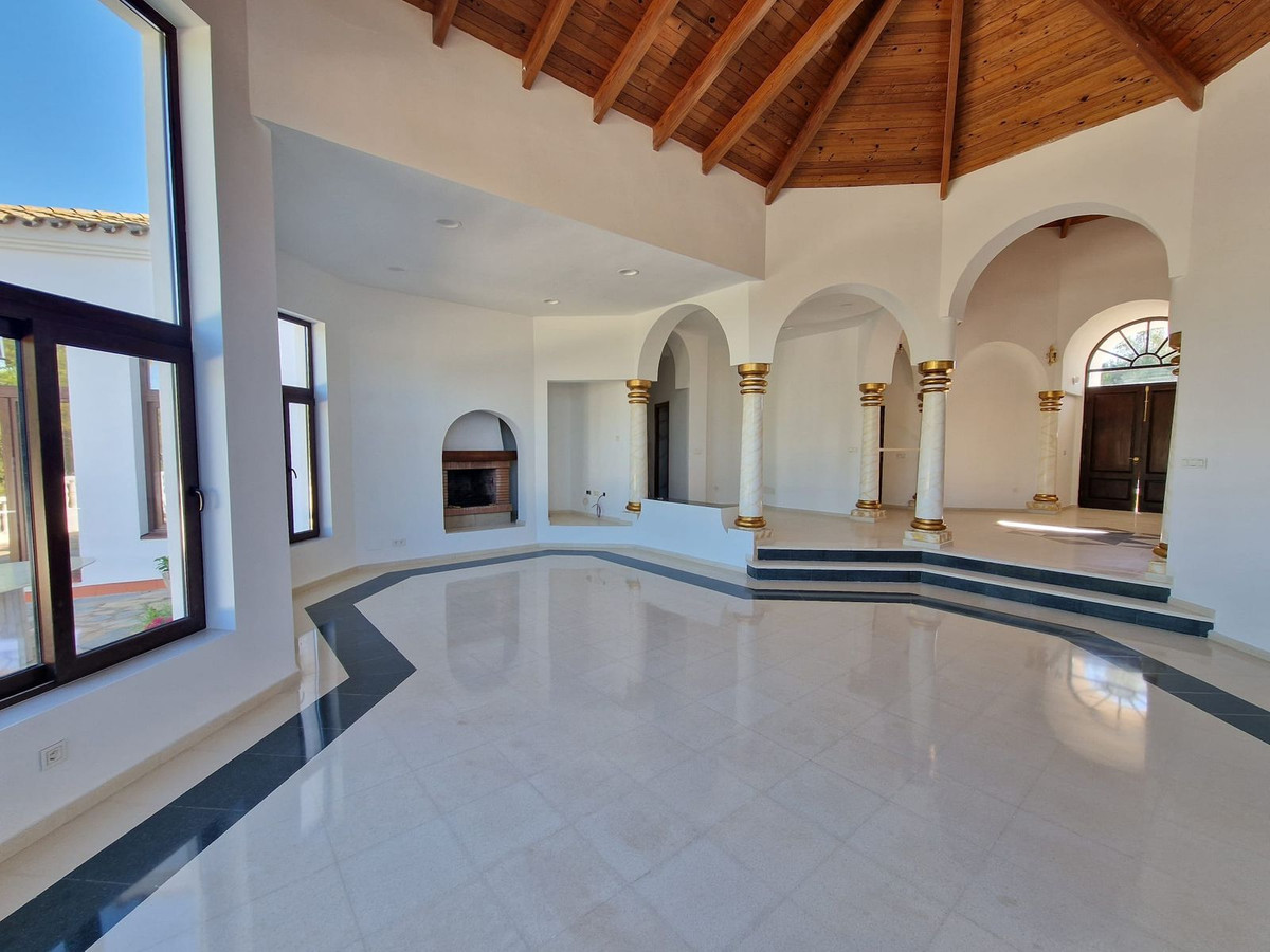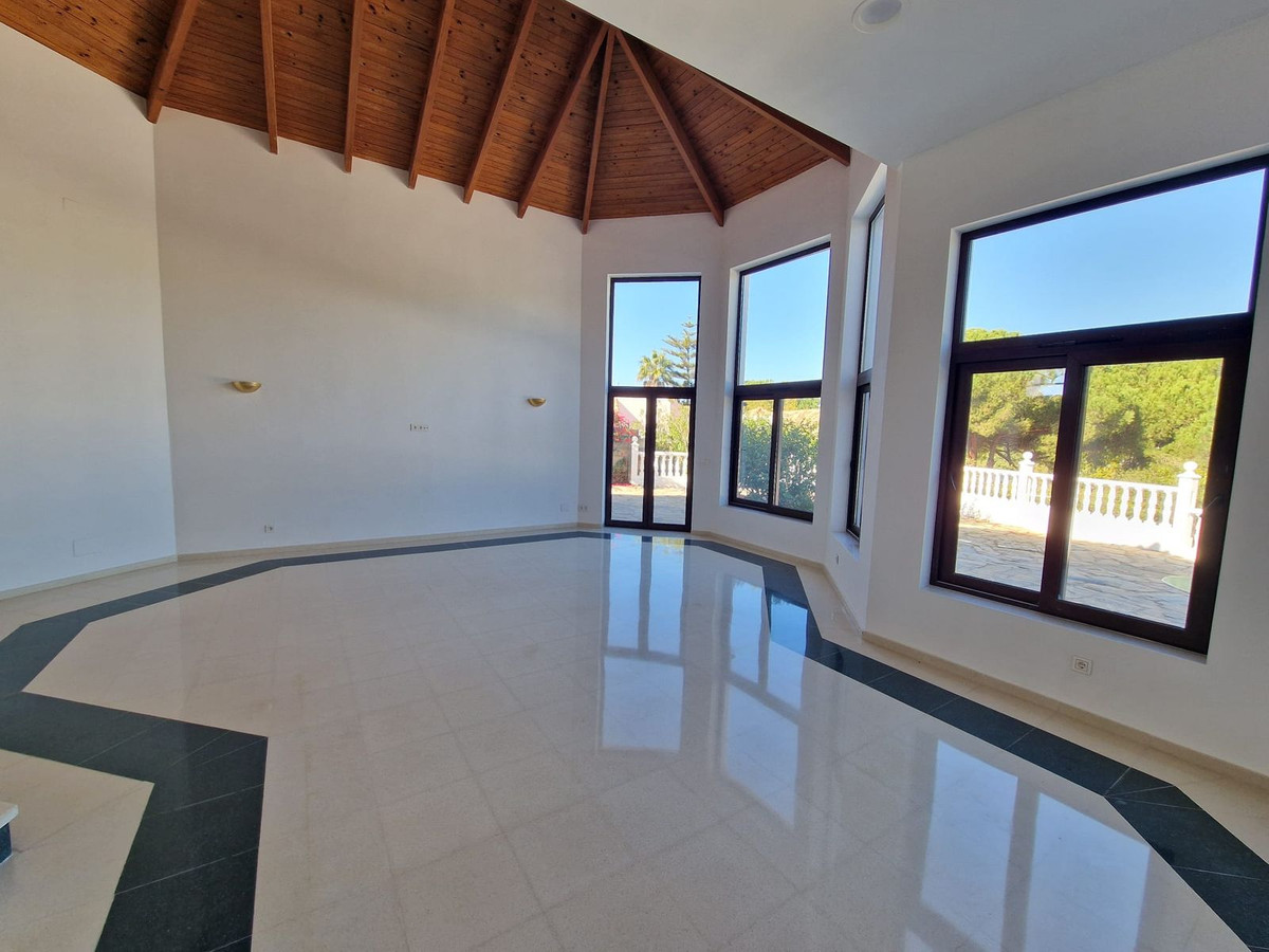 Outside, the villa offers an extensive garden, a private swimming pool, and a tennis court, creating the perfect setting to enjoy the climate and lifestyle of Sotogrande.