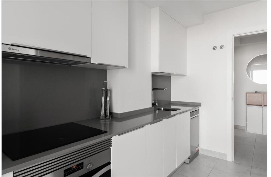 The layout comprises an entrance hall, fully fitted kitchen, bright living–dining area, two bedrooms, two bathrooms, a separate utility/laundry area, and direct access to the terrace. The apartment enjoys a practical and comfortable distribution, ideal for both residential living and rental use.