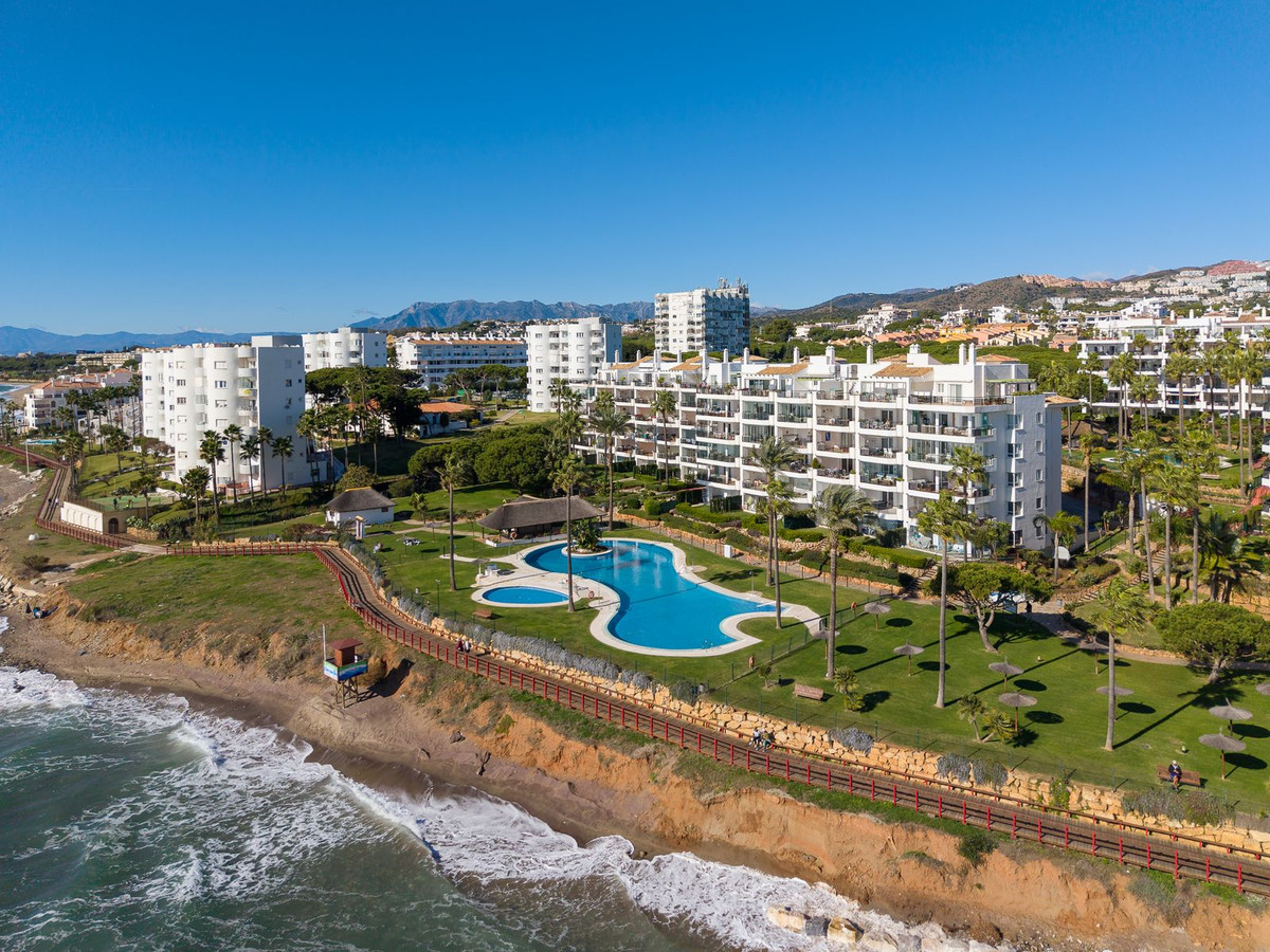 The entire development faces the sea and offers expansive outdoor areas with benches and ample space for sun loungers, whether in shaded areas or full sun. Residents may use their own loungers or rent them directly from the pool bar. The complex features two direct exits to the beachfront promenade, one of which is equipped with a wheelchair- and stroller-friendly ramp. From here, you can enjoy scenic walks stretching from Fuengirola and La Cala de Mijas to Cabopino and Marbella.