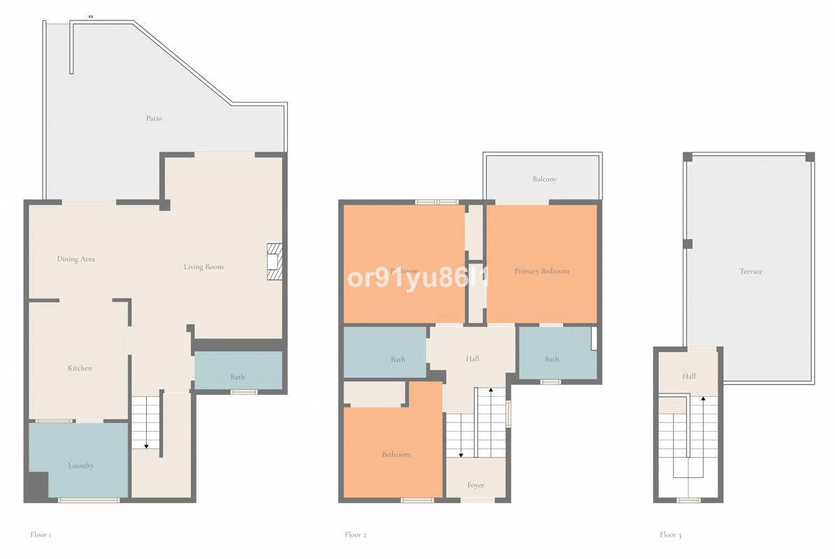 Townhouse Close to the Beach in Costabella Located within a gated, secure community in Costabella, just a short stroll from the beach, this three-bedroom, two-bathroom townhouse features a bright, spacious interior comprising a cosy living room with fireplace and an open-plan kitchen. Step out onto the private, shaded patio—an inviting space for al fresco dining or a relaxing evening with a glass of wine. The well-kept gardens and large communal swimming pool contribute to creating a serene and exclusive atmosphere.