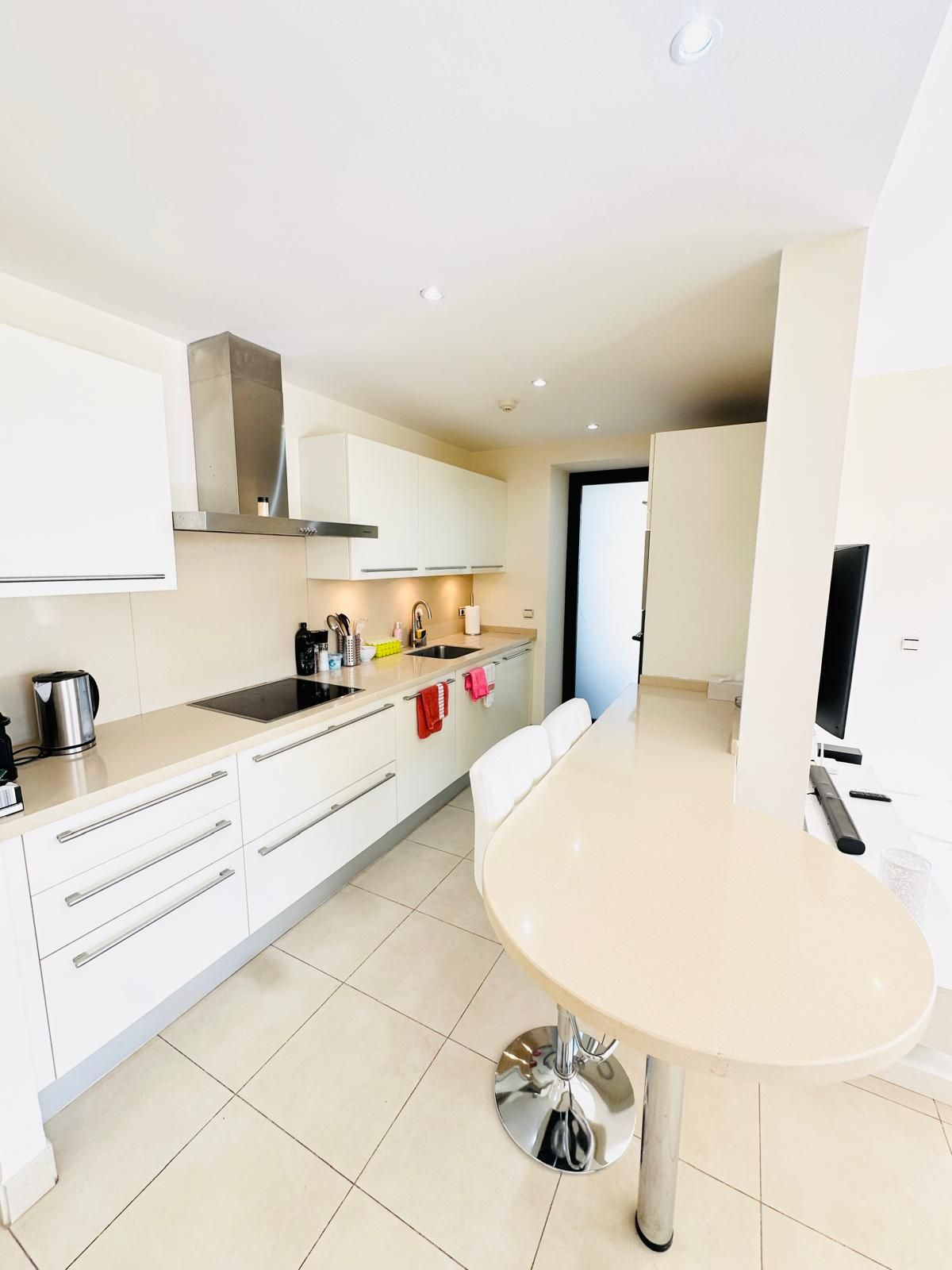 The penthouse consists of three bedrooms, all with access to the terrace, a spacious living room and dining room with stunning views and an open fully fitted kitchen. Two of the bedrooms have en-suite bathrooms and there is a guest toilet.