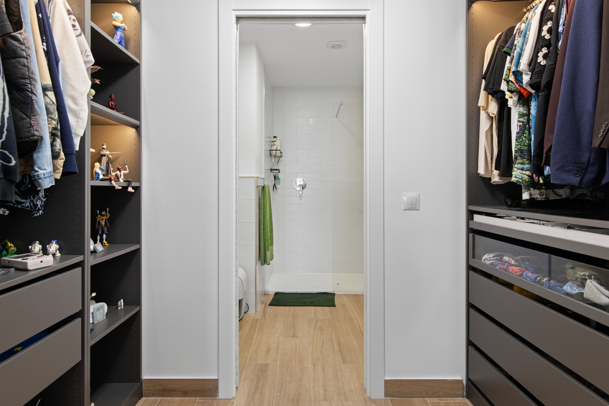 Upstairs, the generous master bedroom, with vaulted ceiling, features a beautiful en suite bathroom and direct access through double glass doors to an open terrace. From here, you can enjoy wide views of the golf course and surrounding mountains.