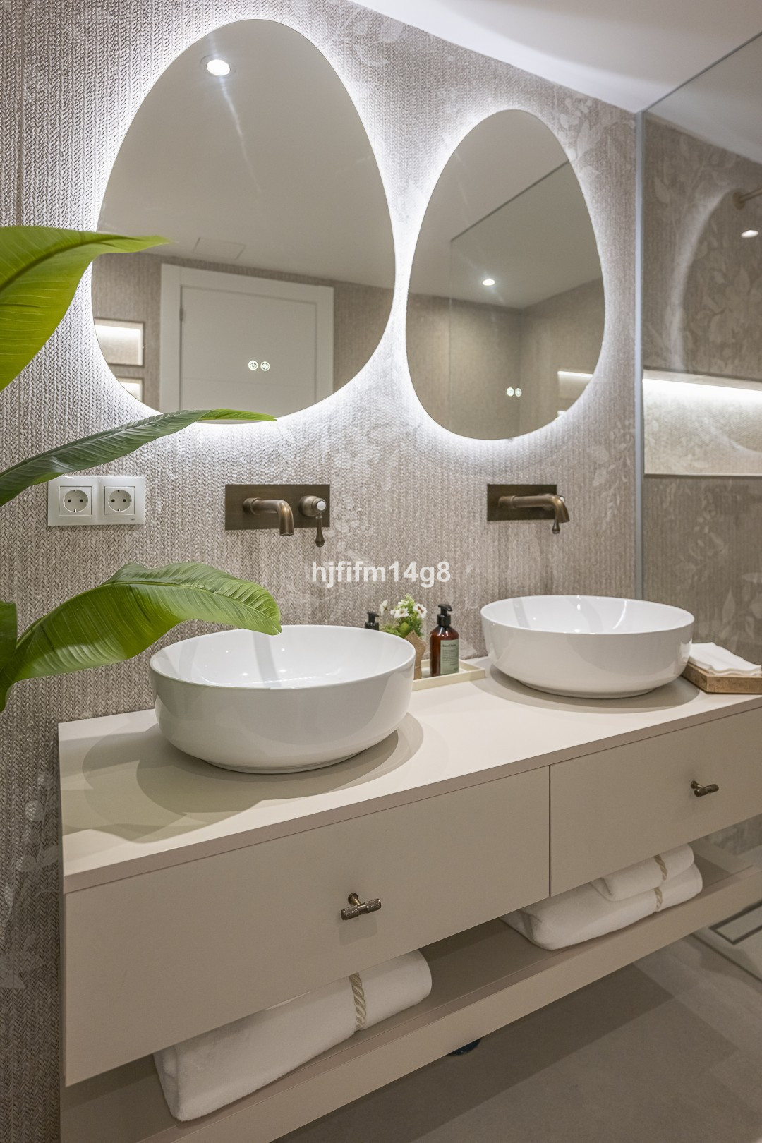 The upper floor hosts an elegant master bedroom with en-suite bathroom and a guest bedroom also with its own en-suite bathroom. These spaces feature custom-made wardrobes and bespoke bathroom vanities, with refined finishes including travertine bedside tables in the bedroom opposite the master suite. All bathrooms are fitted with XXL format tiles, while the guest toilet showcases beautiful high-end textured porcelain tiles.