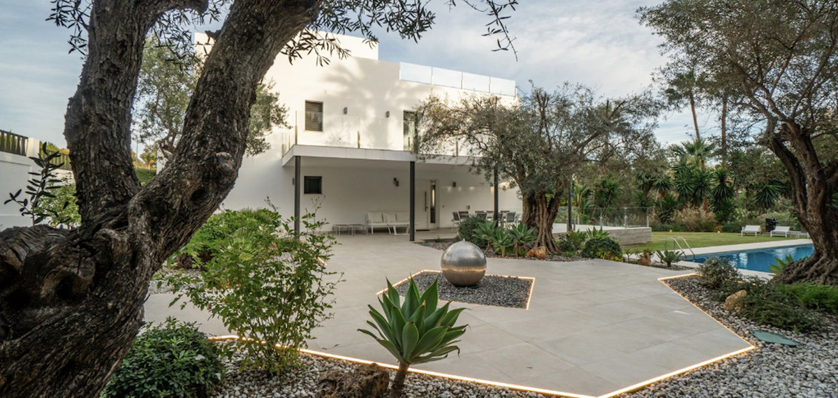Exclusive villa located in the heart of Nueva Andalucia, renovated with luxury qualities. Privileged location, a short distance from Puerto Banus and the most prestigious golf courses, international schools, sports facilities and services. The house consists of 4 plus 1 bedrooms and 5 bathrooms. Upper floor with great views of the La Concha mountain and residential area, with a large solarium terrace. Open and minimalist spaces abound, along with high security measures, in addition to a beautiful lake with direct access from the garden, and a spacious private pool area, where you can enjoy the tranquility that the area offers.