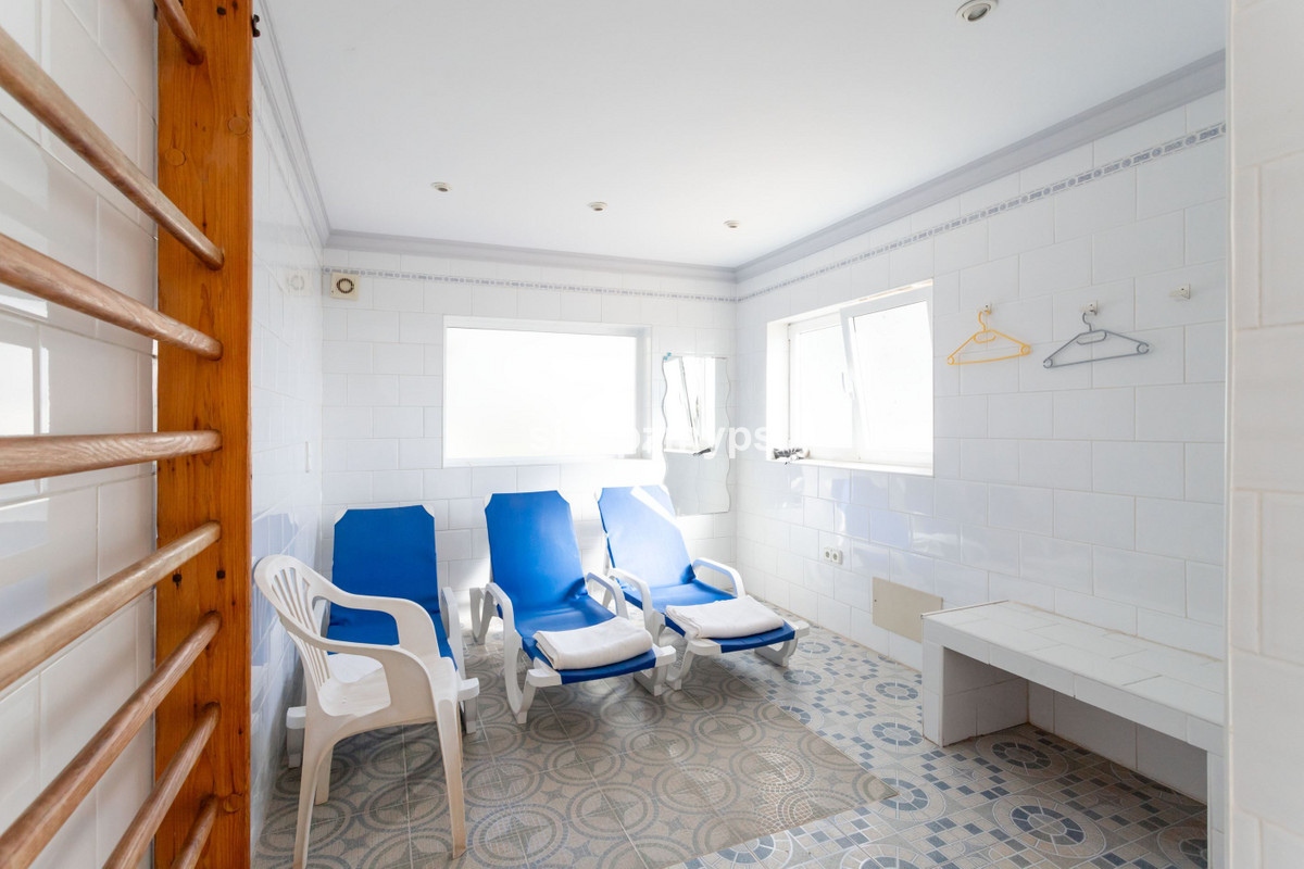 L'établissement comprend également un sauna finlandais avec vue panoramique sur la mer, deux douches, deux toilettes, ainsi qu'un vestiaire et un espace détente.
