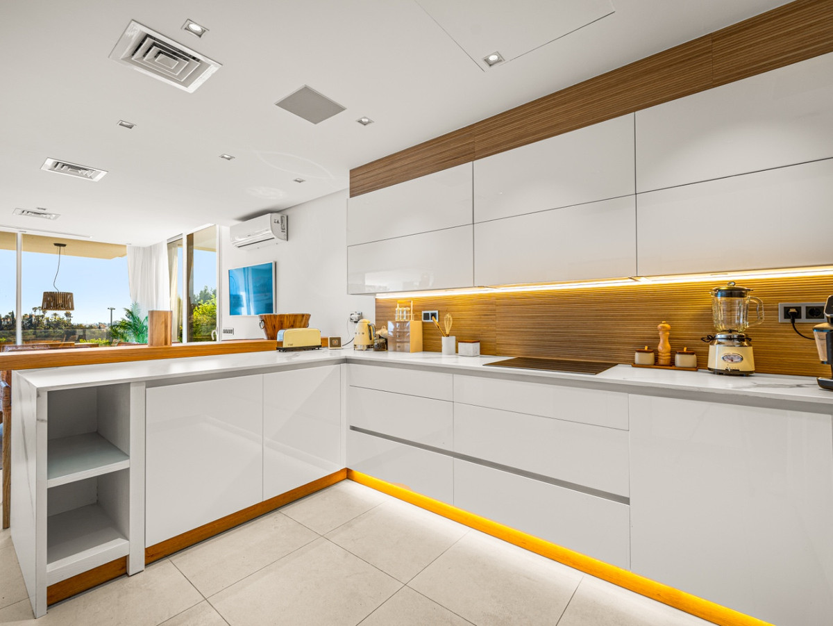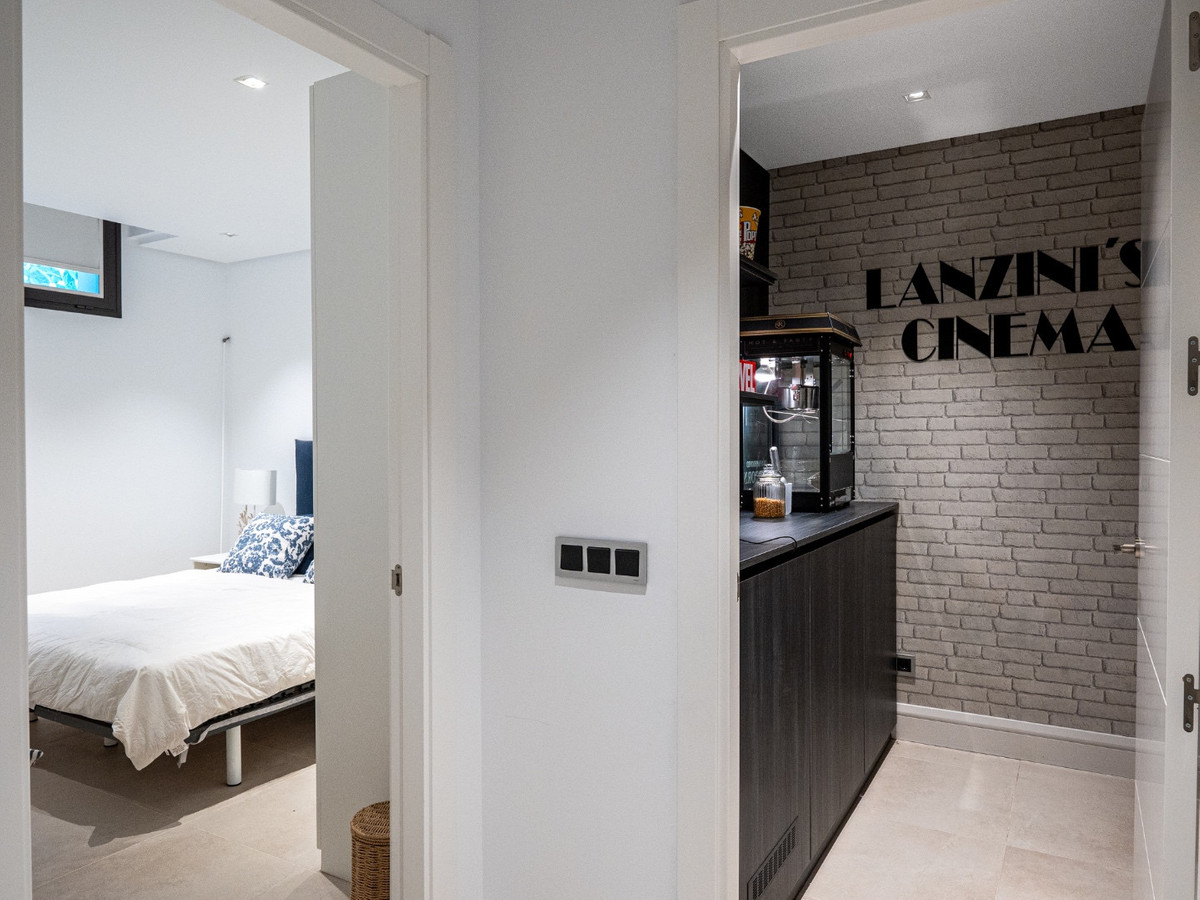 La villa comprend également une salle de cinéma privée, un espace fitness Technogym et une salle de billard. Un système audio SONOS équipe toute la maison et un garage double complète le tout. Entièrement meublée, cette villa représente une opportunité rare d'acquérir une propriété de luxe à Los Flamingos, à proximité des golfs, des plages et des meilleurs restaurants.