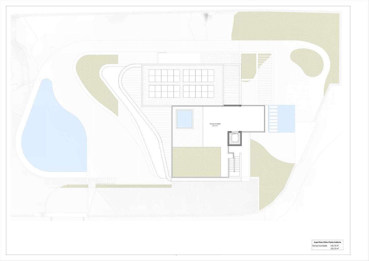 Le projet comprend cinq grandes chambres, dont une suite parentale spacieuse, plusieurs espaces de vie, une salle de sport privée, des espaces de service et un élégant escalier central qui constitue un élément architectural clé.