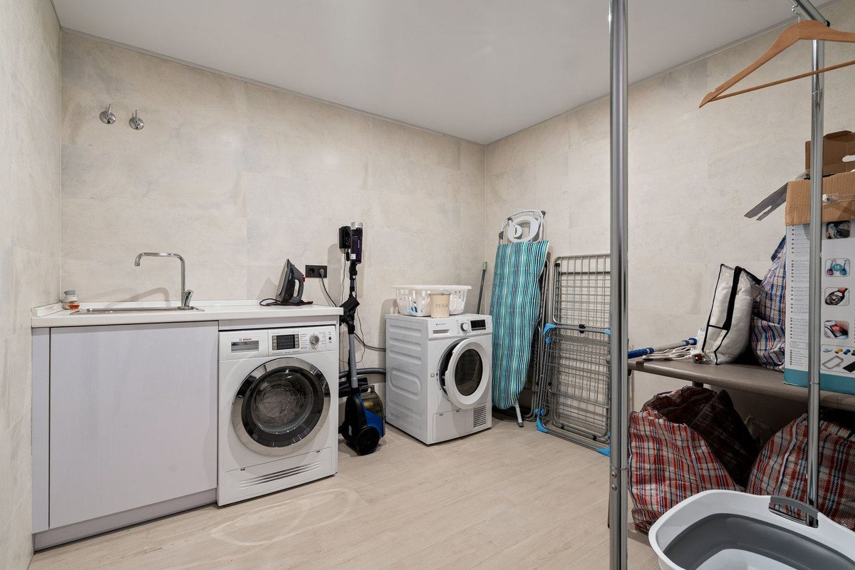 En entrant au rez-de-chaussée, vous découvrirez un espace de vie ouvert, lumineux et spacieux, comprenant un salon et une salle à manger. Les finitions sont réalisées avec des matériaux de haute qualité et un élégant revêtement de sol. Cet espace se prolonge harmonieusement vers une cuisine moderne entièrement équipée, conçue avec soin pour allier fonctionnalité et esthétique. De larges portes s'ouvrent sur des terrasses baignées de soleil, créant une transition parfaite entre l'intérieur et l'extérieur et laissant entrer la lumière naturelle. Ce niveau comprend également une chambre double spacieuse, idéale pour accueillir des invités ou pour une vie de famille flexible.
