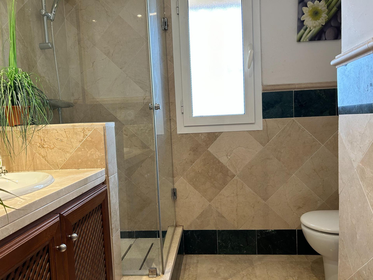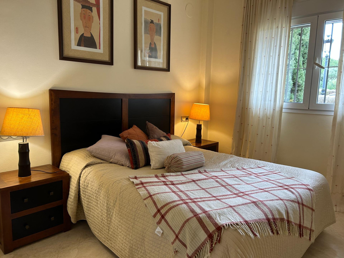Maison individuelle en première ligne de golf, au sein du club San Roque, avec jardin privé et piscine commune, orientation sud-ouest. Cette magnifique maison dispose de 3 dortoirs et 3 places de parking, d'un salon avec cheminée, d'un jardin privé privatif ainsi que de jardins communs et d'une grande piscine commune. Elle comprend une grande cuisine avec salle à manger et une buanderie séparée. Avec 70 m² de jardin privé et un parking couvert à l'arrière de la maison. En plus du superbe jardin privé, elle bénéficie d'un solarium offrant une vue exceptionnelle. La maison est exposée sud-ouest depuis le salon et le solarium assure un confort optimal en hiver. Elle est équipée de la climatisation réversible, du chauffage au sol dans les salles de bains et est entièrement meublée et équipée. Sols en marbre et grande luminosité.