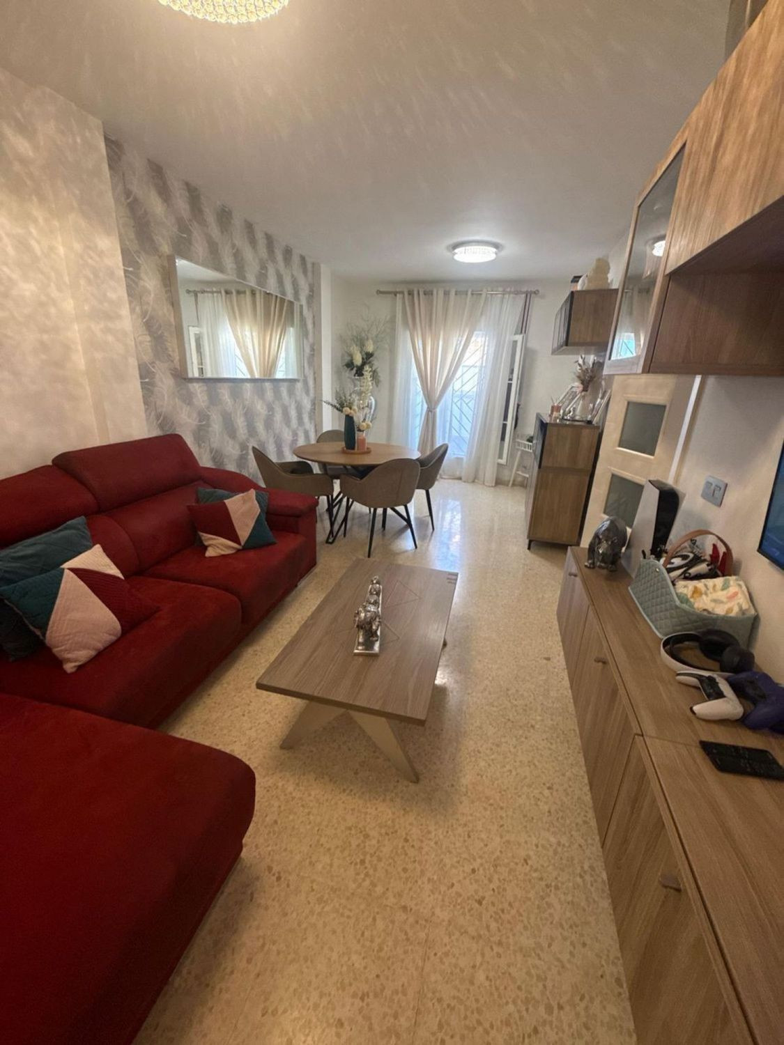 Spacious and bright living room, with careful decoration.