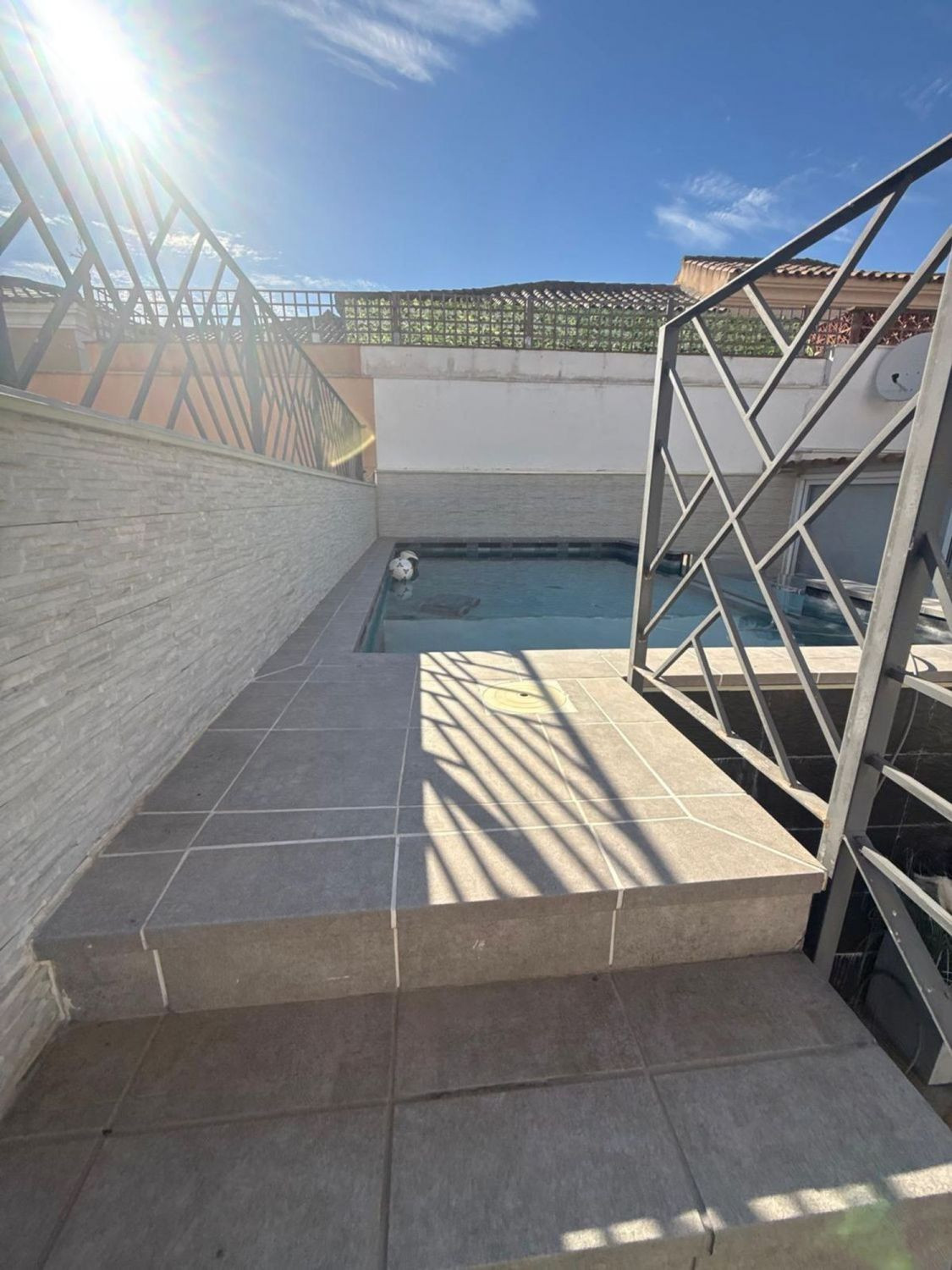 Outdoor area with printed concrete and a designer saltwater pool, perfect for relaxing or sharing moments with family and friends.