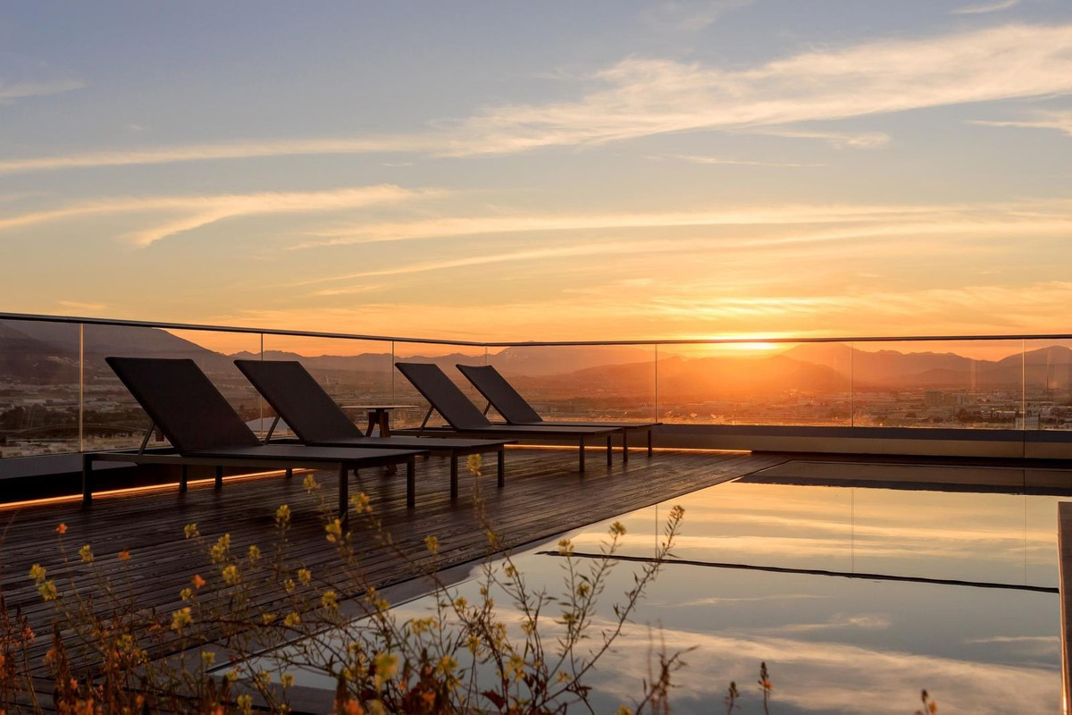 Espace sur le toit comprenant : piscine à débordement, bar gastronomique, solarium et les plus belles vues de Malaga !