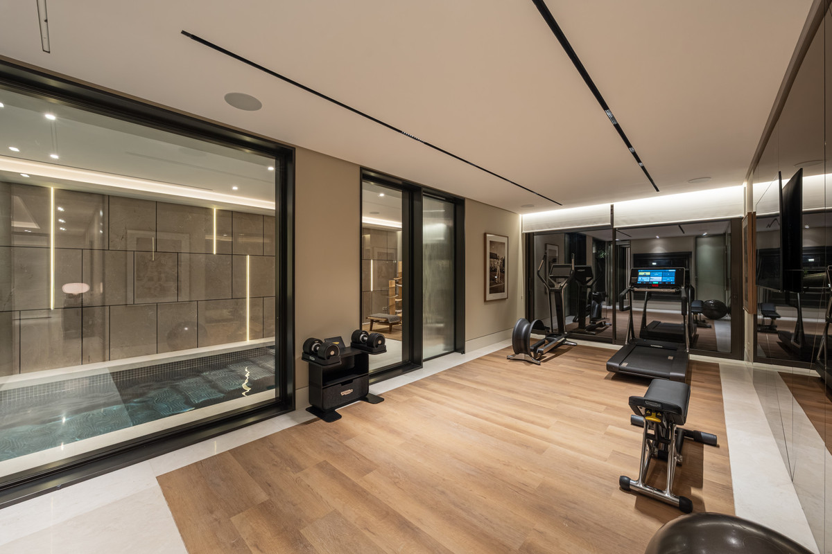 Une palette neutre et apaisante, rehaussée de matériaux naturels comme le bois et le marbre, accentue l'élégance discrète, tandis qu'un souci du détail méticuleux sublime chaque espace. Les pièces à vivre ouvertes sont conçues avec soin pour créer une circulation harmonieuse tout en préservant des zones distinctes pour la détente et les loisirs. Le salon invite au confort et à la sérénité, sublimés par des œuvres d'art soigneusement sélectionnées et des finitions sur mesure qui lui confèrent caractère et personnalité.