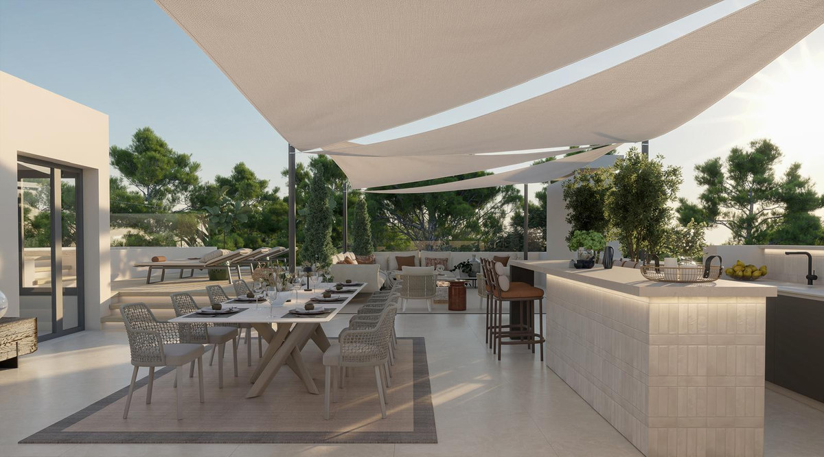 La cuisine contemporaine, à la fois élégante et fonctionnelle, est équipée d'appareils ultramodernes et d'une cave à vin, ce qui la rend idéale pour le quotidien comme pour recevoir avec élégance. Chaque chambre est magnifiquement aménagée avec des matériaux haut de gamme et une décoration raffinée, offrant un refuge serein et luxueux. Les salles de bains sont dotées de doubles vasques, de douches à l'italienne et de baignoires îlot, pour une expérience digne d'un spa.